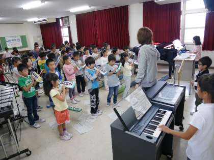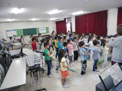 2年生の全体合奏練習がはじまりました。なかなかむずかしいですね。でも少しずつあわせてがんばっていきましょう。