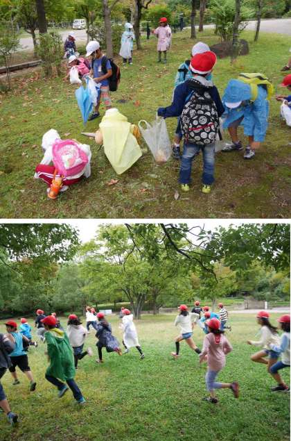 1年生は「秋さがし」をしています。どんぐりの実や紅くなった落ち葉などをあつめました。学校で作品づくりに使います。
