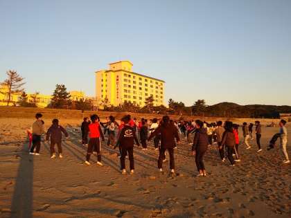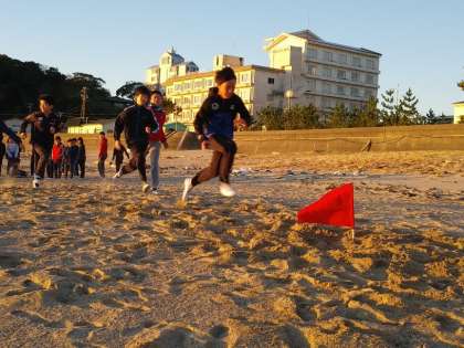体操をして、毎年恒例の「ビーチフラッグ」です♪