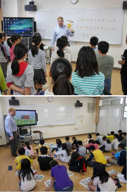 英語の授業は楽しくわいわいと5・6年生!