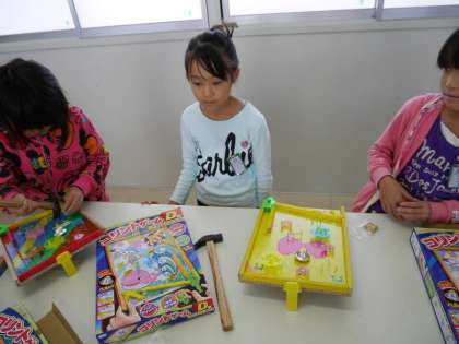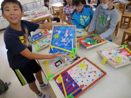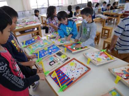 4年生の図工で作ってきたコリントゲームが完成しました。みんなで遊ぶと楽しいね。