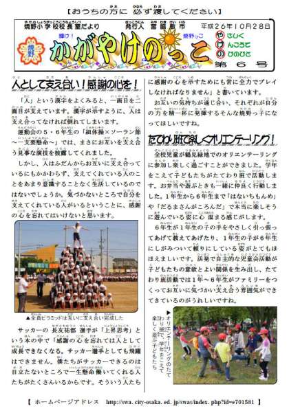校長室だより6号を終業式に配布しました。ホームページにもアップいたしました。