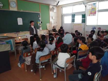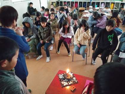 教室の明かりを消して、ローソクの火をともすとそこはもう「お話の世界」です。子どもたちはお話を聴き入り、物語の主人公になっていました。