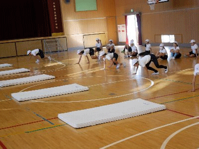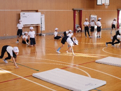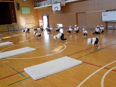 4年体育、いろいろマット運動で楽しくがんばった!その1