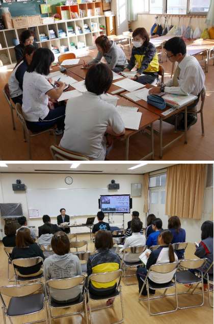 研究授業のあと、各授業担当に分かれて研究討議をおこないました。その後に全体で、関西学院大学教授の佐藤先生より、指導講評をいただきました。