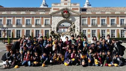 修学旅行のメインイベントの一つであるスペイン村に到着しました。道中は、バスレクで盛り上がったおかげで、バス酔いすることもなく全員元気です。到着して全員で記念写真を撮影しました。これからは昼食を食べて、思いっきり遊ぶ予定です。(2回目の休憩は「安濃」ではなく「多気」だったようです。)