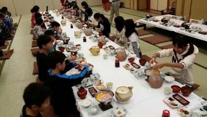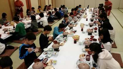 朝食をいただきました。朝からしっかり体を動かしたので、おなかもペコペコです。ここの朝食は目玉焼きを自分で焼きます。焼き具合の好みがみんな違うのがよくわかりました。ご馳走さまでした。朝食後は荷物整理と各部屋の清掃を行う予定です。
