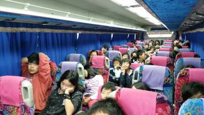 鳥羽水族館で最後にペンギンの散歩ショーを見ました。並んで歩くペンギンの姿がとてもかわいく感じられました。その後、水族館での活動のまとめをして修学旅行の全行程が終わりました。あとは修学旅行の思い出を胸に学校に帰るだけとなりました。予定通り大阪に向けてバスは出発しました。