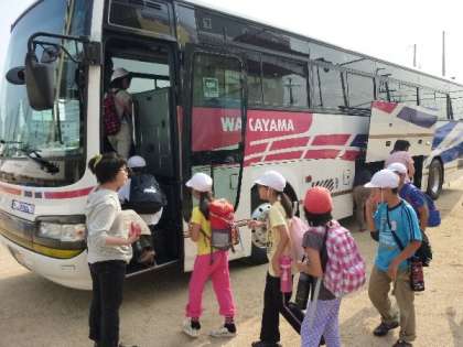 5年生はバスに乗り込み、たくさんの見送りをうけて出発いたしまた。気をつけていってらっしゃい。よい林間学習をして、たくさんの土産話を聞かせてください。