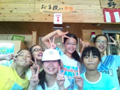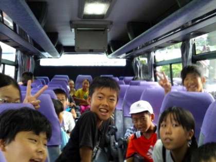 バスではバスレクレーションとして、しりとりやDVDなどを見ています。大淀の道の駅に着きトイレ休憩をしています。これから山道にはいっていきます。