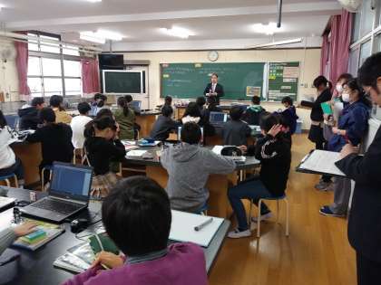 今日は先生たちによる、先生のためのプログラミング研究授業がありました。他校からも多数、授業見学と研修に来校されました。来年度から必修となるプログラミング教育の準備を着々と進めています。研修会では、大学の先生に講演をいただき、実りある研さんとなりました。
