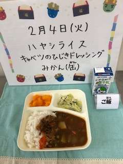 今日の給食は、子どもに大人気のハヤシライスでした。