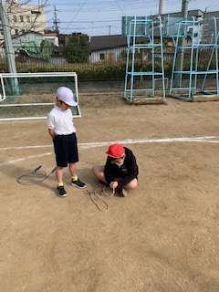 途中で、なわがからまったのかなと思ったら「この子には長そうだったから、なわを短くしてる」と調整までしてくれる6年生。最後はみんなで大なわもして、とても楽しく素敵な時間を過ごすことができました。