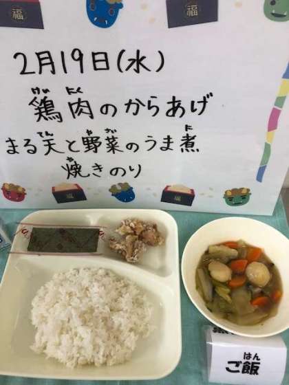 たくさんの野菜とまる天(魚のすり身の天ぷら)を中華スープで煮込んだうま煮は、仕上げにでんぷんでとろみをつけています。