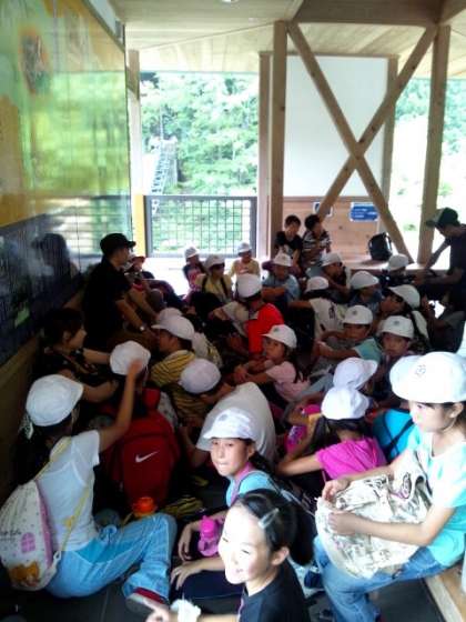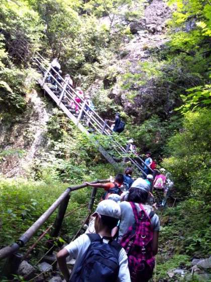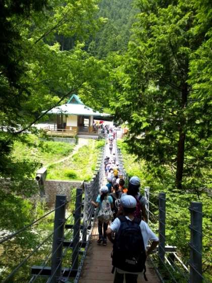 昼食を終えて、洞川温泉にむけてハイキング出発です。階段をのぼり、観音峯登山口休憩所でひとやすみ。まだまださきは長い。