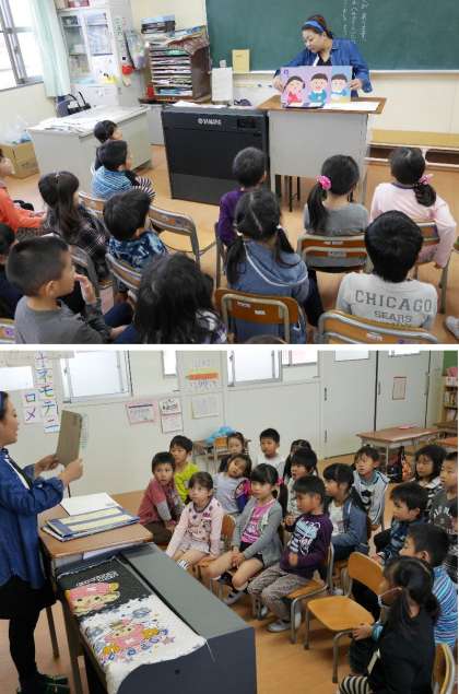 今日の読み聞かせは1年生でおこなわれました。とっても縦に大きな絵本が楽しいですね。