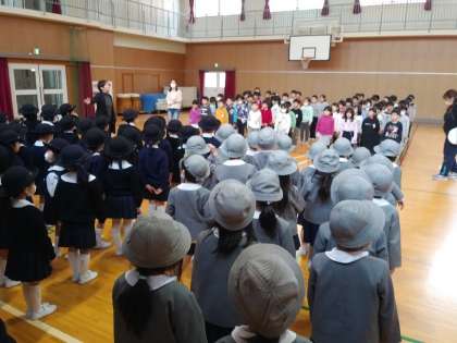 近隣の保育園、幼稚園の年長さんが焼野小学校の見学にやってきました。4月から小学1年生になる園児たちは、広い校舎内を見学、1年生の授業の様子を見学して、おにいさん、おねえさんと講堂でこま回し、だるま落とし、おてだま、けん玉、ヨ〜ヨ〜などの昔遊びを、教えてもらいながら一緒に楽しみました。もうすぐ小学生。さらに希望に胸がふくらむ見学会になりました。