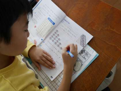 2年生が九九の表を完成させているところです。2の段をがんばっています。できあがったら、「にいちがに」「ににんがし」「にさんがろく」・・・とおぼえていきます。おとうさん、おかあさんも、せんせいもむかしやりましたよね。