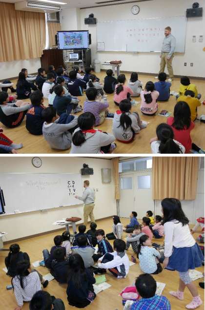 5・6年生の英語の授業は、茨田北中学校から英語ネイティブのメイソン先生がきてくれています。だんだん難しい英語にがんばっています。