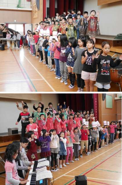 いよいよあと1週間にせまってきました。11月22日の土曜授業の音楽発表会です。今日から体育館での舞台練習が、各学年ごとに始まりました。楽器のおく位置や立ち位置を確認しての練習でした。楽しみですね。