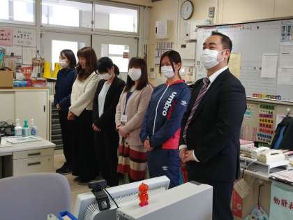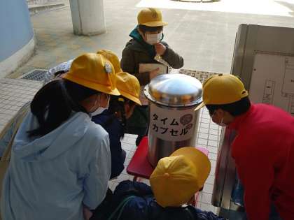 新型コロナ感染予防で学校休業日ではありますが、特別な登校日として、今日修了式が行われました。一度に多人数で集会できなため、時間差をつけて2回にわけて修了式を各教室で行いました。各教室ではできるだけ距離を置き、間隔を空けて座りました。玄関には10周年記念タイムカプセルの展示もしました。修了式が終わり、今年度で本校を離任される教職員がたの挨拶が職員室でありました。令和元年度も終わり、子どもたちは春休みに入り、4月から新学年を迎えます。今年度も一年間ご支援ご協力、ありがとうございました。令和2年度もひきつづきよろしくお願いいたします。
