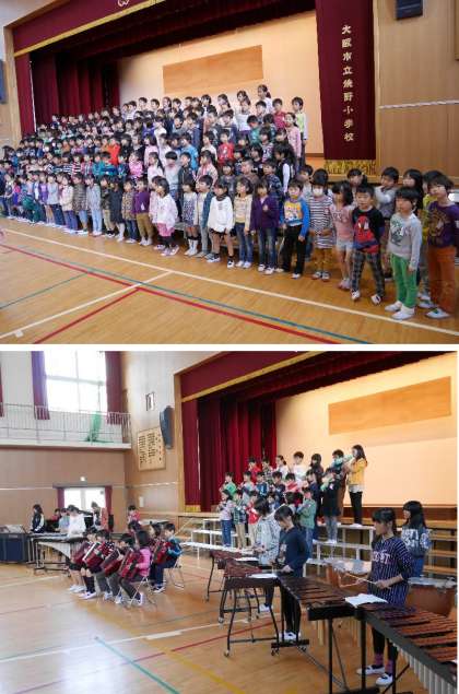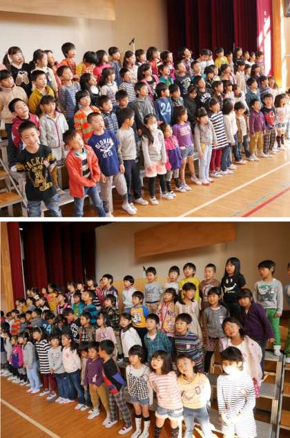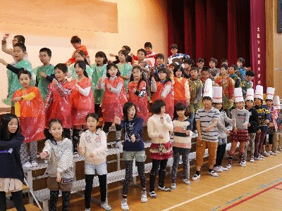 講堂での音楽発表会の練習が本格的になりました。立ち位置を確認して、曲の出だしのタイミングや楽器の場所などを決めての練習です。身体をうごかしたり、ポーズをとりながらの練習もありますね。