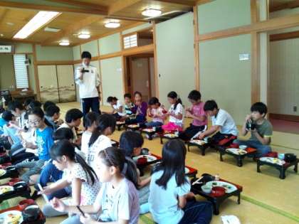 起床は6時30分、朝会を7時よりおこないました。こちらは、大阪より気温を低くてさわやかで快適です。皆元気に活動しています。7時30分から朝食でした。しっかり食べて、今から洞川周辺のオリエンテーリングにでかけます。
