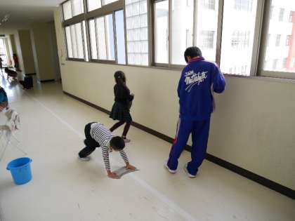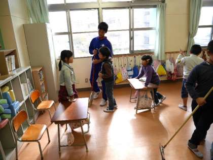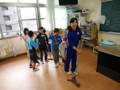 給食が終わると清掃です。小学校の先生は忙しいでしょう。