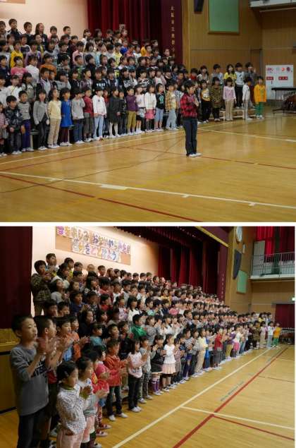 低学年全体の曲は「うたえバンバン」です。元気があって、最後に腕をつきだしてきまっていましたね。