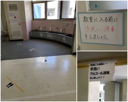 安全に子どもたちに登校してもらうために、校内の消毒もさることながら、安全に活動してもらうための工夫もあちこちに凝らしました。