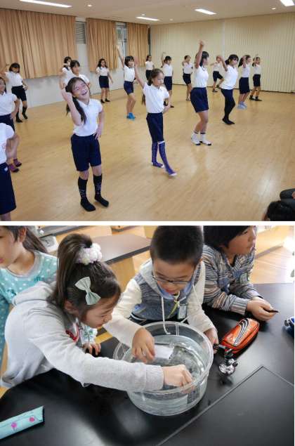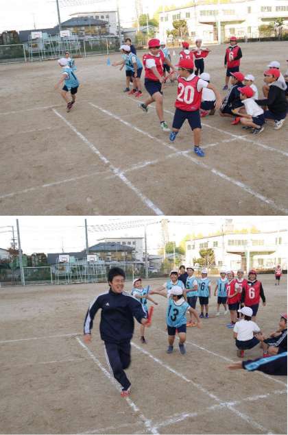 クラブ活動の様子です。アウトドア部ではリレーをしていました。先生も走っています。さすかに速いです。
