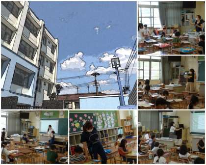 でもこれまでと違うのは、教室の前には消毒液が配置されていたり、手洗い場も並ぶポイントが設置されていたりします。みんなでコロナ対策しましょう。