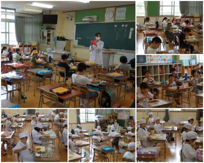 いままでのように、グループで向き合って食べることはできませんが、みんなで一緒に給食を食べるのは久しぶり。