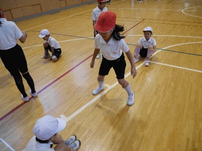 なかなかむずかしいかな。ゴムあそび昔はよくみかけたものです。