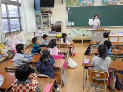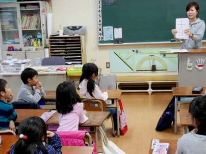 1年生は「一日」「二日」「三日」・・・・「十日」の読み方を練習しています。順番にこたえていますが、なかなか全問正解しません。もりあがりながら読み方練習をがんばっています。