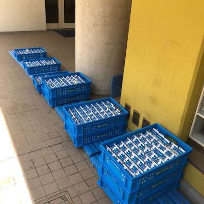 飲み終わった牛乳パックの返却が密にならないように、スノコを増やして返却場所を広くしていただきました。全員が返し終わった後、見に行くと、特に決まりがあるわけではないですが、パックが全部同じ向きできれいに並んでいました。
