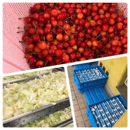 さくらんぼは山形県産のものです。今日も、牛乳パックがきれいに向きをそろえて並べられていました。
