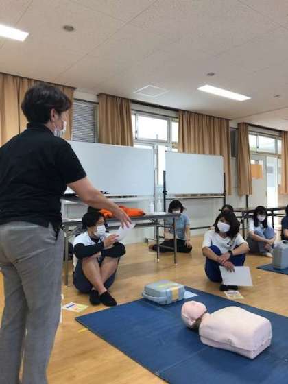 本日、教職員全員で救急救命講習を行いました。心肺蘇生法やAEDの使い方など、実技を含めた研修会となりました。また、今年は新型コロナウイルス感染症の流行を踏まえた市民による救急蘇生法についても学びました。