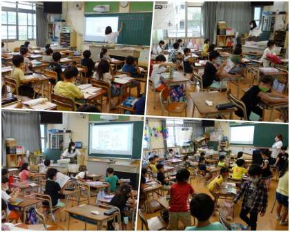 新型コロナの今、大声で歌うのは難しいので、いろいろと工夫して楽しい音楽の授業を行っています。