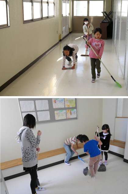 今週のたてわり班での清掃は今日で終わりです。楽しく全員で掃除できていましたね。ファミリーのつながりも深まりましたか。