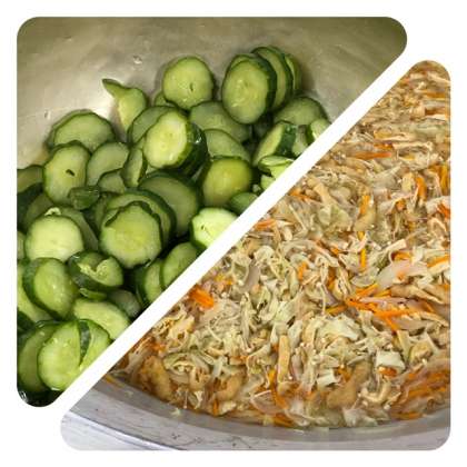 きゅうりは焼き物機で蒸し、配缶時に塩をふってあえています。