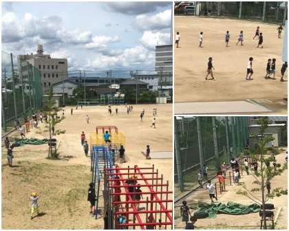 使用禁止の赤旗が撤去されると、子どもたちは一目散に運動場に向かいました。