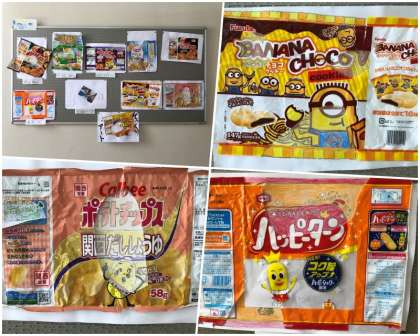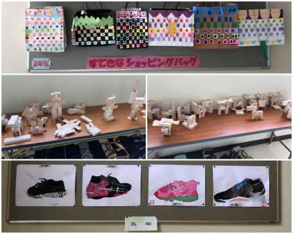 二枚目は校内各所にある展示。それぞれの学年の作品が並べられています。いずれも力作です。