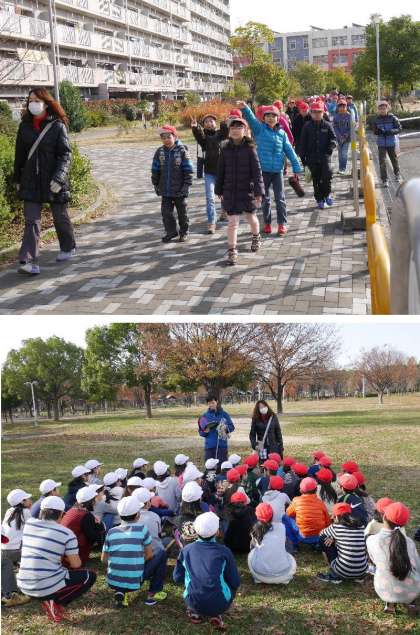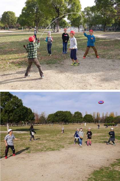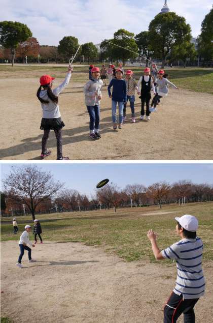 今日は少しあたたかったです。4年生はみんなで鶴見緑地まで歩いていきました。大芝生で、フリスビーや縄跳び、おにごっこなどをして皆で身体をうごかして楽しみました。とてもたのしかったですね。