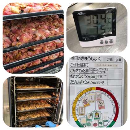 今日の給食室の温度は30.4度でした。先週よりは少し低めですが、湿度は70%を超えていました。
