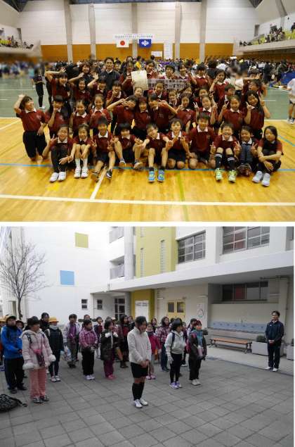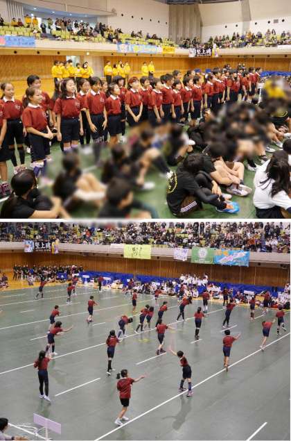 焼野小学校の「やっきーず!!!!!」が紹介されると、はつらつと挨拶をしていました。なわとびの技は抜群で、観客席からはどよめきがおこり、演技後の拍手も一番大きかったです。表彰ではおしくも第2位で入賞しました。でも、やっぱり焼野小学校は最高でした。本当に縄跳びを心から楽しんで演技している姿に感動しました。同じ演技に参加した学校からは「焼野小学校があこがれです」とのコメントをいただきました。本当にすばらしい演技でした。おめでとうございます。