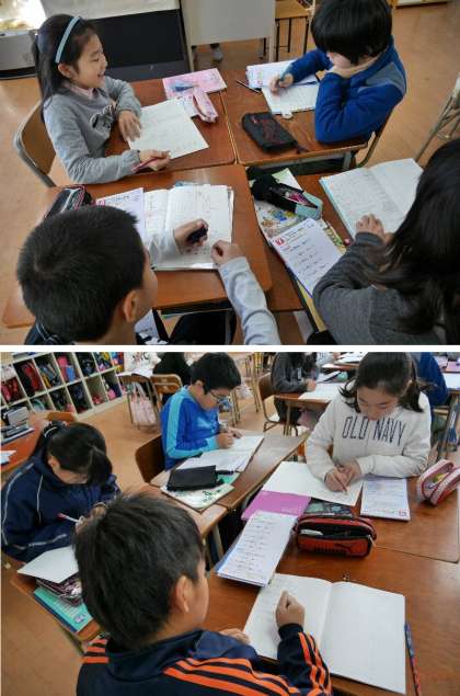 5年生の算数では百分率について学習しています。問題の答え合わせをみんなでしています。だんだんむずかしくなってるけどがんばってね。