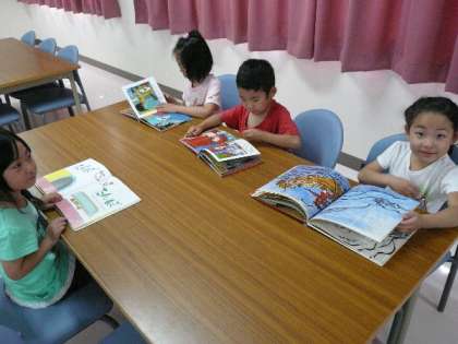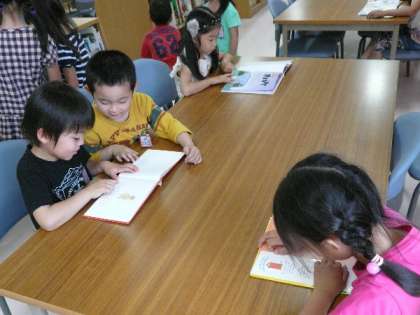 1年生が図書室の使い方を学習しています。絵本の読み聞かせでは熱心に耳を傾けていました。図書室での約束事を確認して、本を読みました。ひらがなやカタカナの本を読んでいました。すごい。