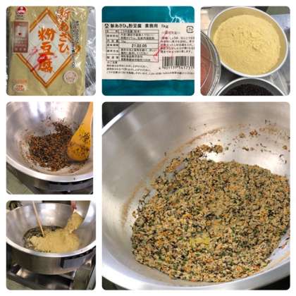 『高野どうふのいり煮』は、粉末の高野どうふを使った献立です。一般にはあまり目にしませんでしたが、最近は大手スーパーでも購入できます。サラダ油を熱し、豚ひき肉・にんじん・ひじきをいため、だし汁・調味料・グリンピースを加え、粉末高野どうふを一度に加えてさらに煮ます。豚ひき肉とだしのうま味を高野どうふに含ませて仕上げます。