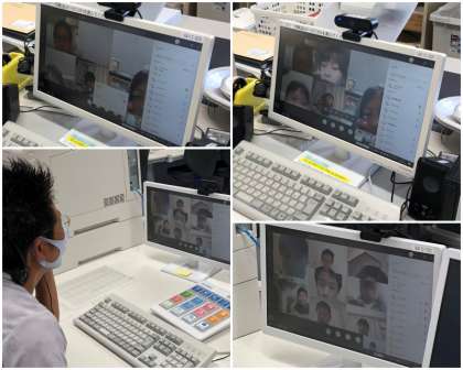 14日は高学年。先に学校で接続の仕方などについて練習したうえで、各家庭とのネットワーク接続のテストを行いました。